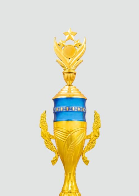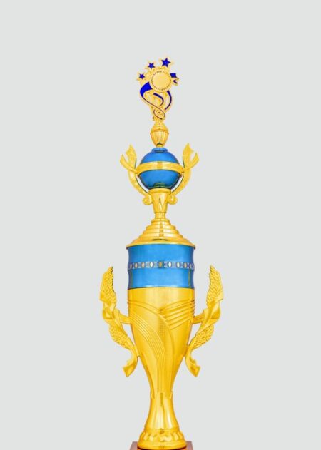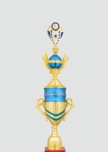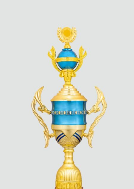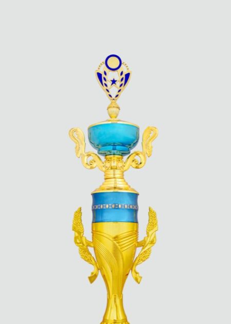 Elegant gold and blue trophy with a striking design, perfect for celebrating achievement and honoring exceptional performances in any competition or event.