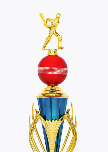 Economy cup with Ball and Batsman. Stylish cup made of metallized plastic giving it a shining metallic look. Plastic base is made of dual colour granite finish. Economy series for Sports, Schools, Colleges, Local, Corporate, etc.