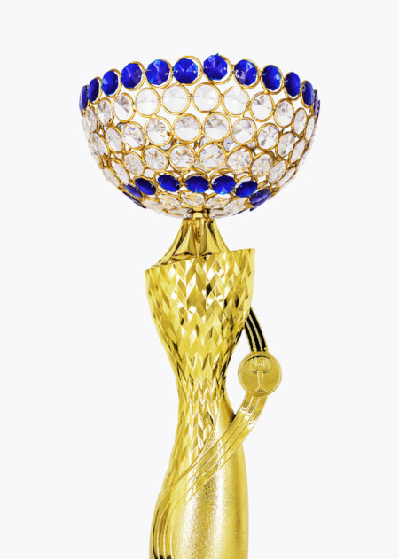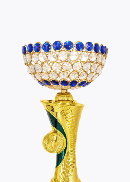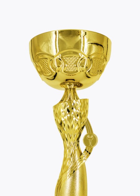 Economy cup with FootBall. Stylish cup made of metallized plastic giving it a shining metallic look. Plastic base is made of dual colour granite finish. Economy series for Sports, Schools, Colleges, Local, Corporate, etc.