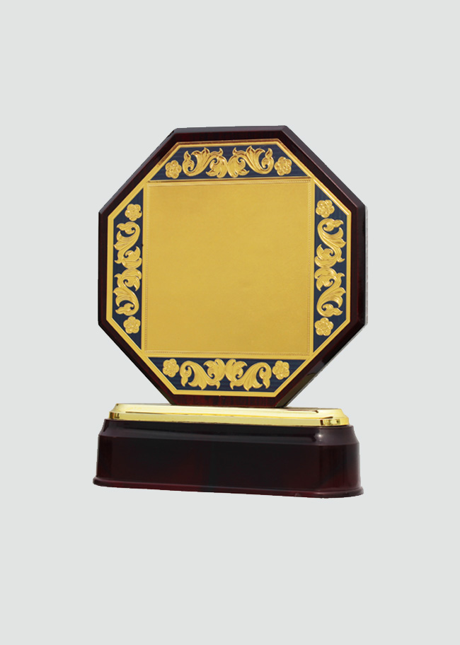 Octagonal award with a golden centerpiece, intricate floral border, and sturdy dark base. Perfect for corporate awards, academic recognition, and special milestones.